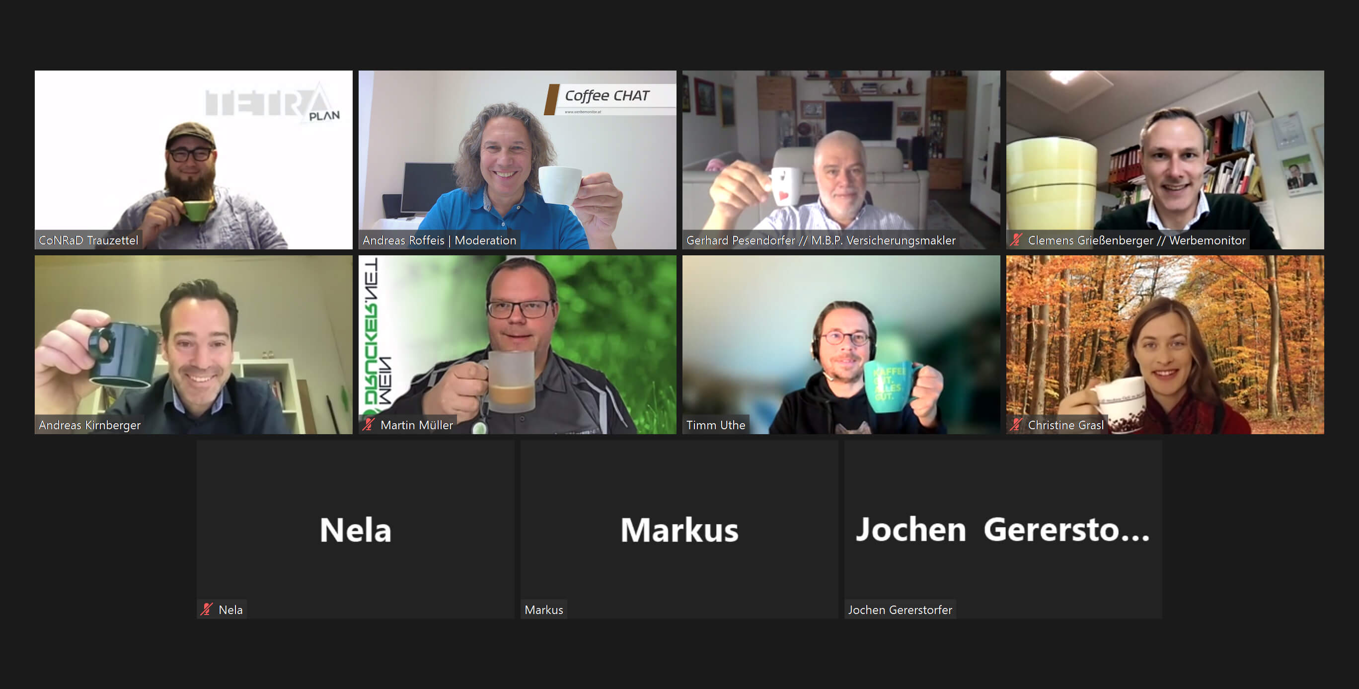 Das bewährte Motto: BYOC – Bring Your Own Coffee! Diesmal ging es um ein Update verschiedener Aktivitäten.