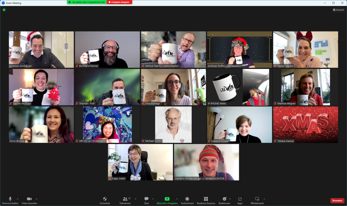 Unser bewährtes Motto: BYOC – Bring Your Own Coffee! Und diesmal wieder mit einer Weihnachtsmütze