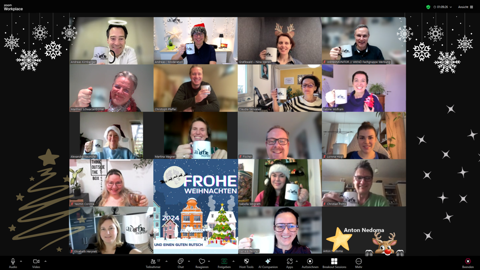 Unser bewährtes Motto: BYOC – Bring Your Own Coffee! Thema: Rückblicke 2024 und Ausblicke 2025 - wieder mit Weihnachtsmütze