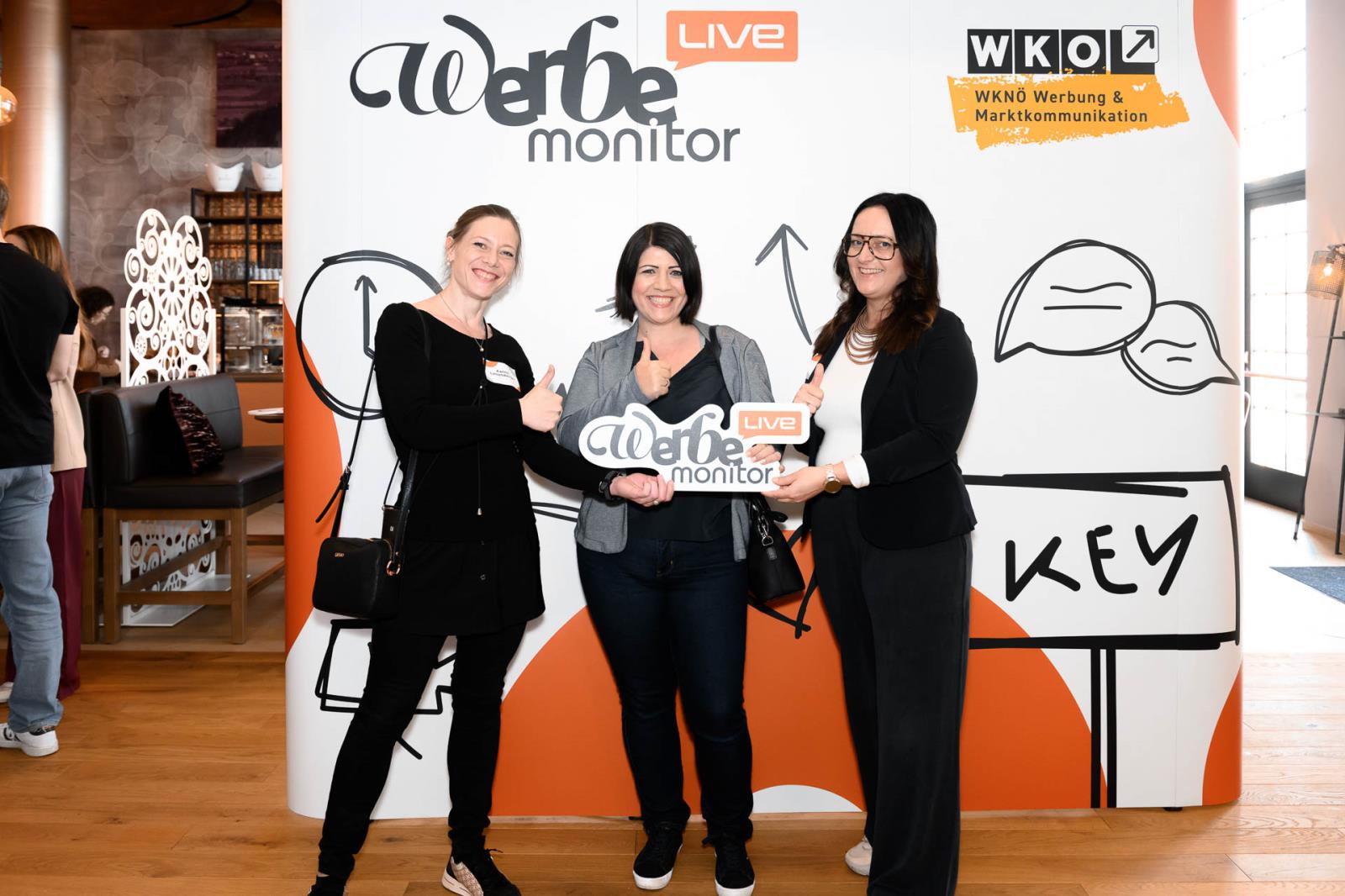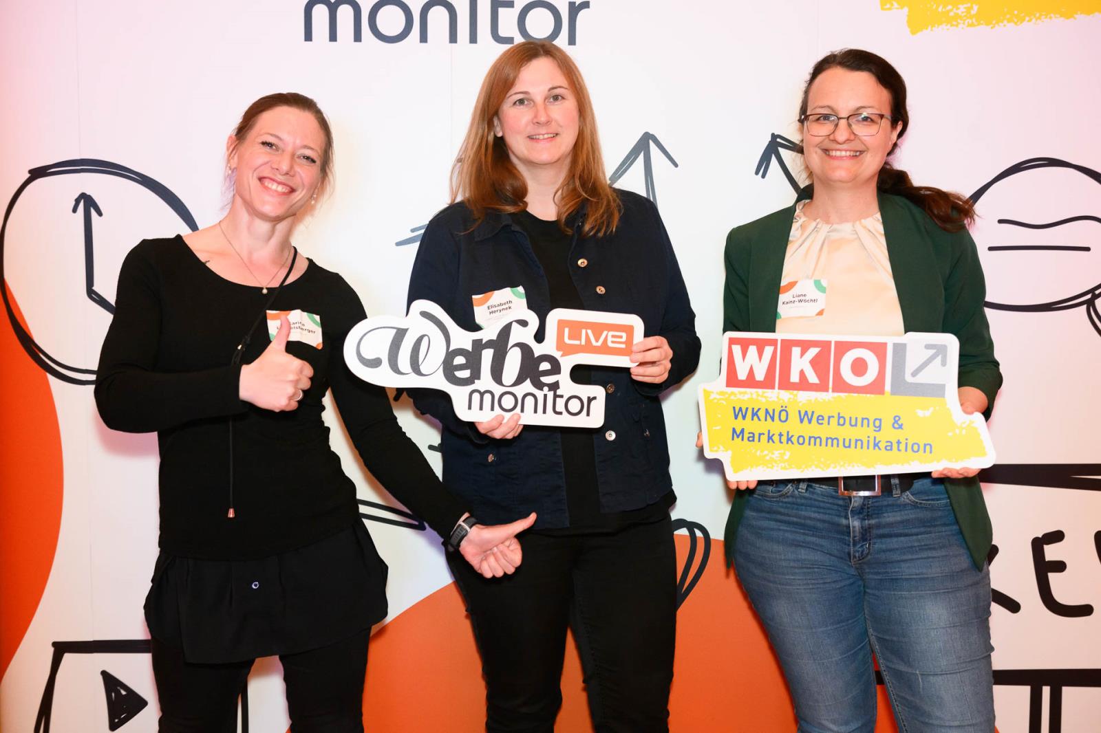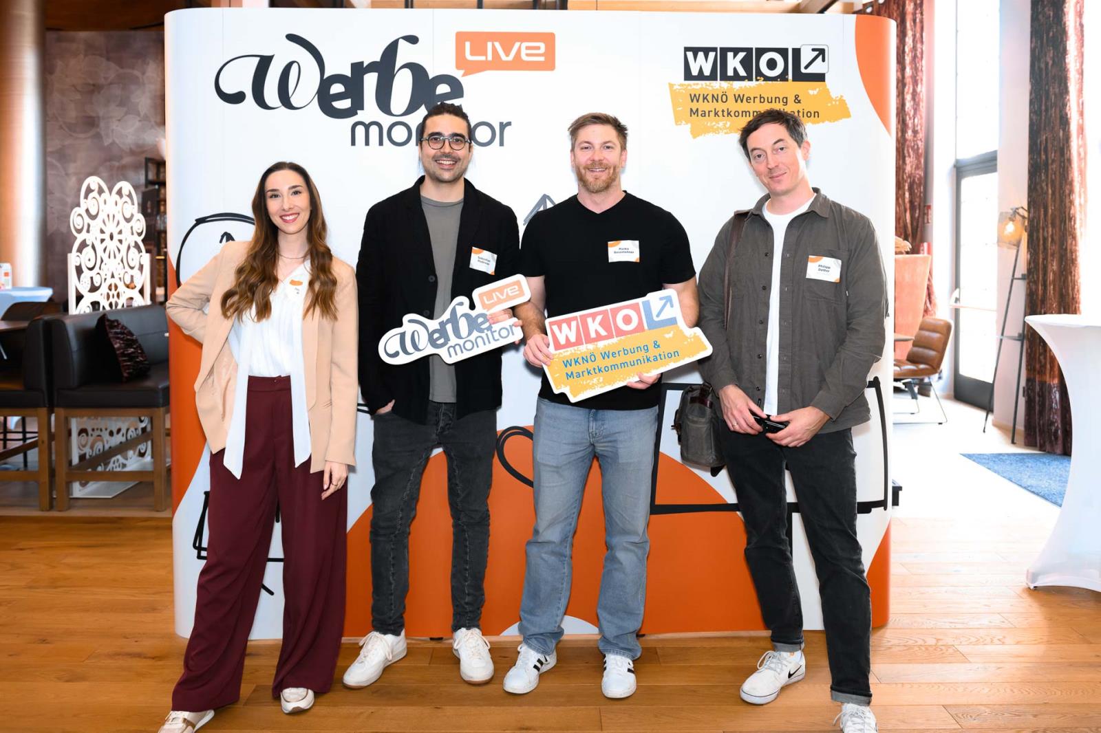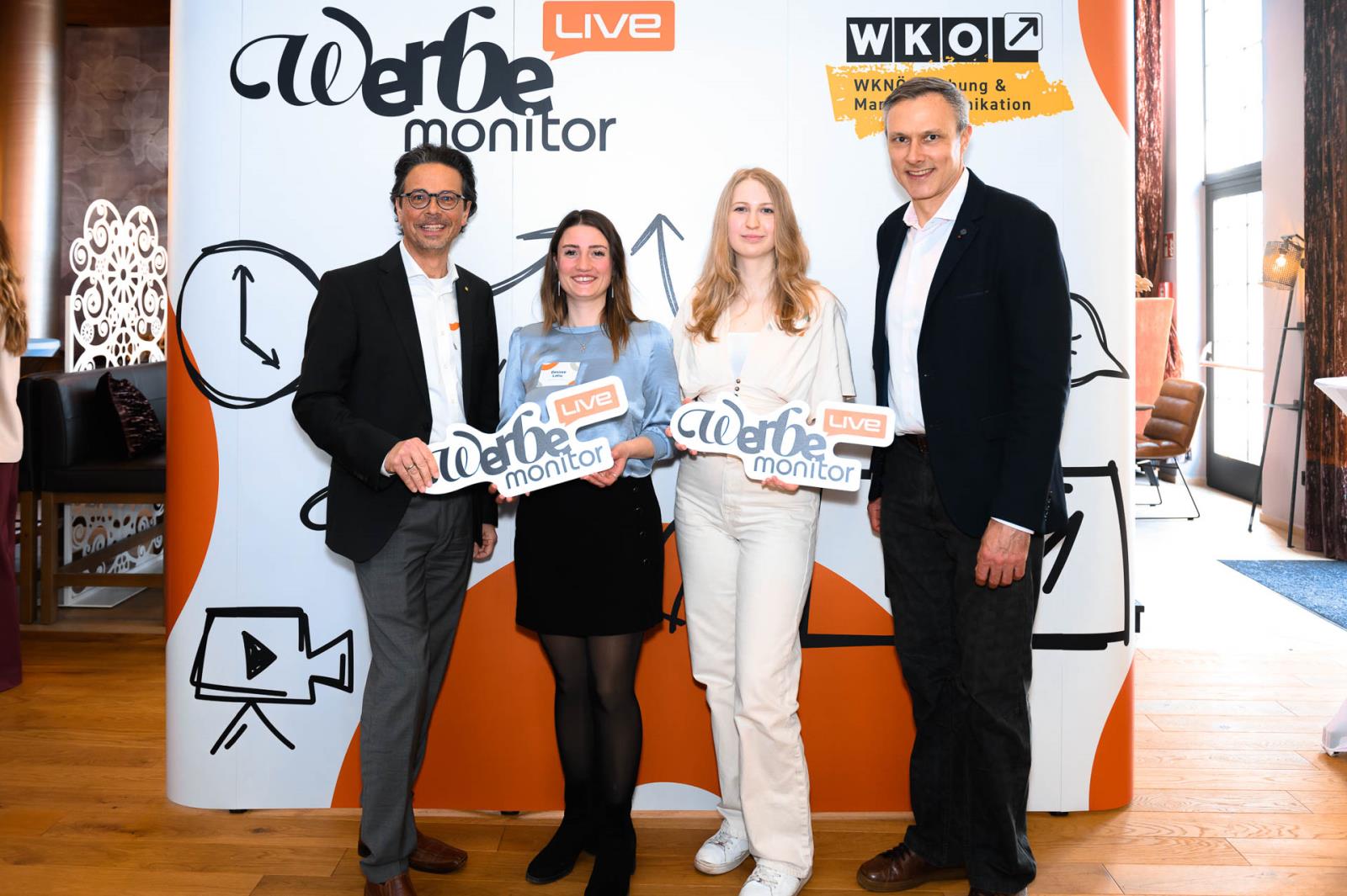 Werbemonitor LIVE, ein Format zugeschnitten auf die Werbe- und Kommunikationsbranche mit: Fachgruppenobmann Andreas Kirnberger, Fachgruppengeschäftsführer Clemens Grießenberger, Ausschuss-Mitglied Andreas Roffeis, Fachgruppenobmann-Stv. Timm Uthe, Julia Lipp, Ausschuss-Mitglied Herbert Sojak, Vanessa Wurster, Sebastian Podesser, Kerstin Oberzaucher, Ausschuss-Mitglied Bernhard Dockner, Marco Lumsden, Max Niederschick, Richard Weiretmayr, Werbemonitor-Chefredaktion Sabine Wolfram und Fachverbandsobmann Jürgen Bauer (v. l.)