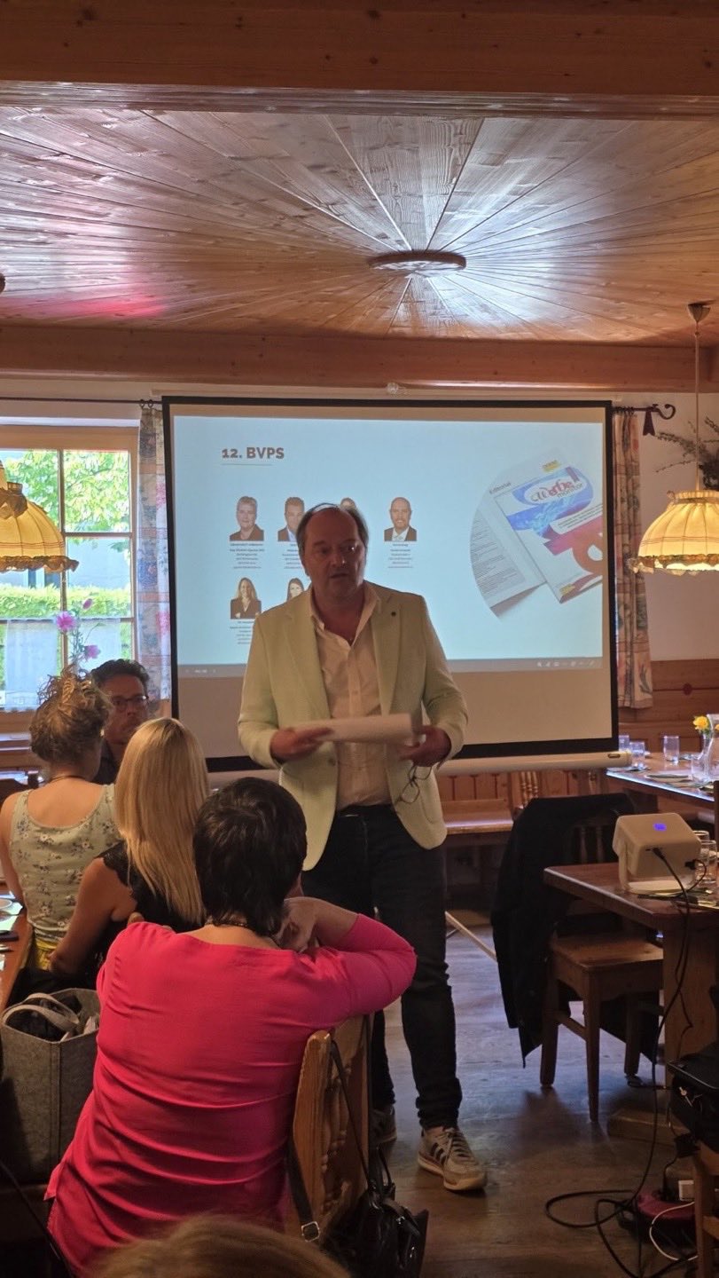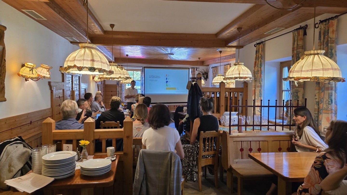 Treffpunkt war beim traditionellen Heurigen Guga in Perchtoldsdorf, der den passenden Rahmen bot. Den Anfang machte die Fachgruppentagung. Obmann Andreas Kirnberger und sein Team präsentierten aktuelle Infos aus der Fachgruppe. Dazu zählen Aktivitäten der letzten Monate, die Kommunikation über die verschiedenen Kanäle, Veranstaltungen und das jährliche Highlight, der Verleihungsevent Goldener Hahn. Fragen der Mitglieder wurden zwischendurch immer beantwortet.