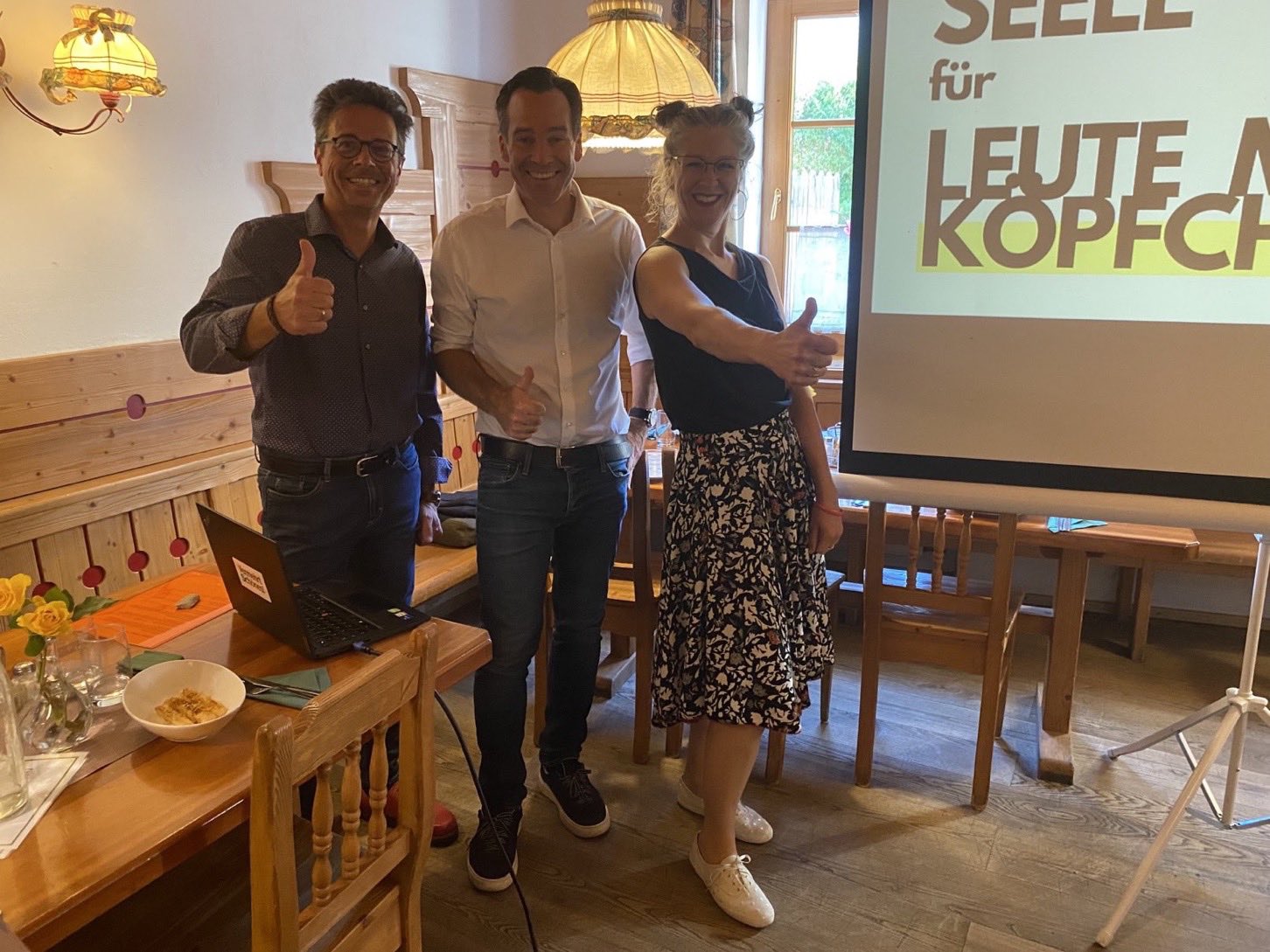 Obmann-Stellvertreter Timm Uthe, Obmann Andreas Kirnberger und Vortragende Bettina Benesch beim Late Summer Special.